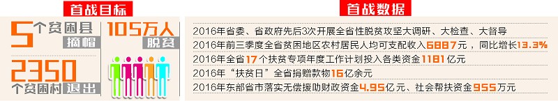 为确保首战首胜,我省进一步做好脱贫攻坚顶层设计。2016年初,我省推出17个专项年度工作计划,形成“3+10+N”的脱贫攻坚政策体系,优化完善财政税收、金融支持、产业发展、国土资源等13类脱贫攻坚专项政策。此外,我省还建立从省到乡的脱贫攻坚领导小组“双组长”制,强化“五个一”帮扶,形成最强作战指挥体系。