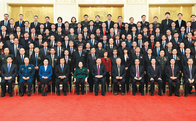 1月9日,2016年度国家科学技术奖励大会在北京人民大会堂隆重举行。党和国家领导人习近平、李克强、刘云山、张高丽等出席大会并为获奖代表颁发奖励证书。会前,习近平等党和国家领导人会见获奖代表并合影。新华社记者 李学仁摄