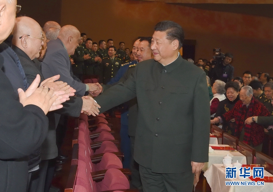 下午3时30分许,习近平来到老同志们中间,全场响起热烈掌声。习近平同大家亲切握手,关切地询问他们的身体和生活情况,共同回顾过去一年党、国家和军队事业发展的辉煌历程,展望强国强军的美好前景。老同志们表示,要更加紧密地团结在以习近平同志为核心的党中央周围,牢固树立政治意识、大局意识、核心意识、看齐意识,不忘初心、继续前进,积极支持实现强军目标、建设世界一流军队的事业,满怀信心迎接党的十九大胜利召开。