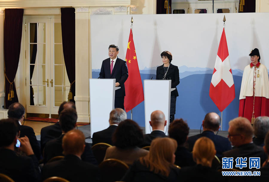 1月16日,国家主席习近平在伯尔尼同瑞士联邦主席洛伊特哈德举行会谈。 这是会谈后,两国元首共同会见记者。 新华社记者 饶爱民 摄