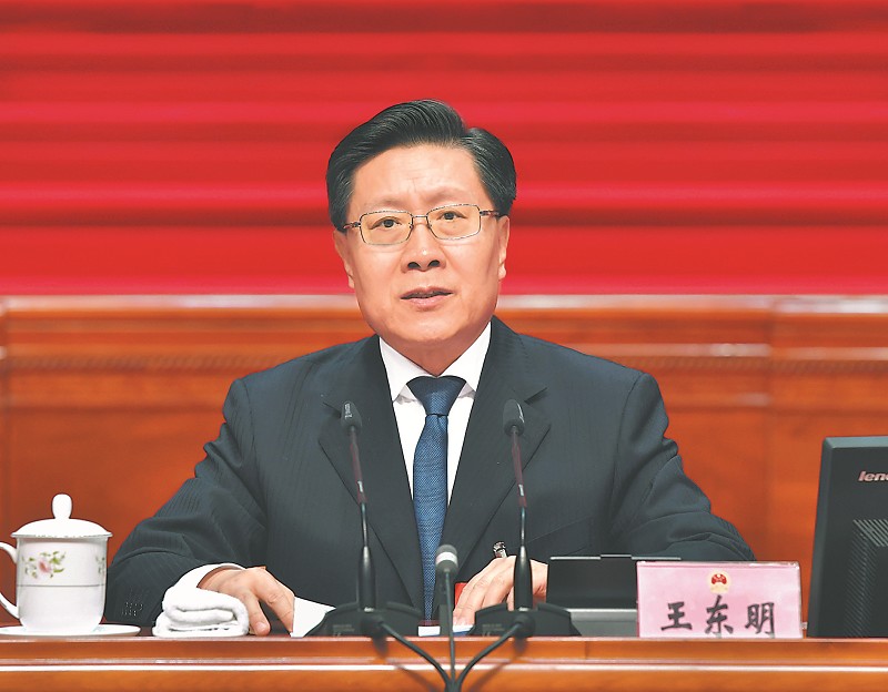 大会主席团常务主席、执行主席王东明主持会议。