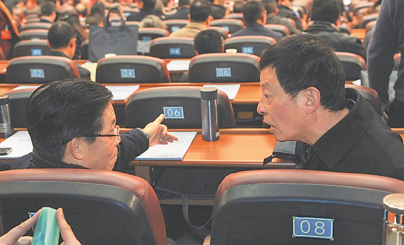 1月15日,在省政协十一届五次会议第二次全体会议开始前,两位委员交流履职经历;会中,认真聆听大会发言。