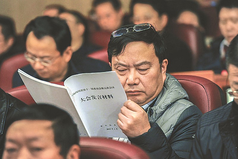 委员认真阅读大会发言材料。