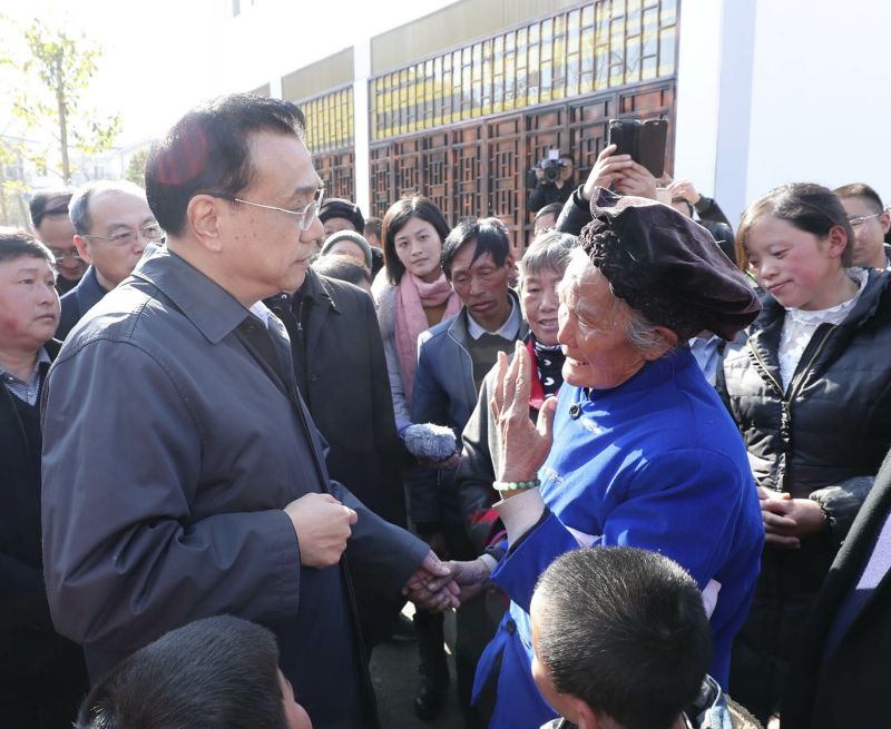 李克强与村民围坐村头坝子话治“穷”