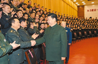 1月23日,中华民族传统节日——鸡年春节来临之际,中共中央总书记、国家主席、中央军委主席习近平专程来到陆军第65集团军,深入基层连队,看望慰问官兵,代表党中央和中央军委,向全军指战员、武警部队官兵、民兵预备役人员致以诚挚问候和新春祝福。这是习近平亲切接见驻张家口部队师以上领导干部和团级单位主官。