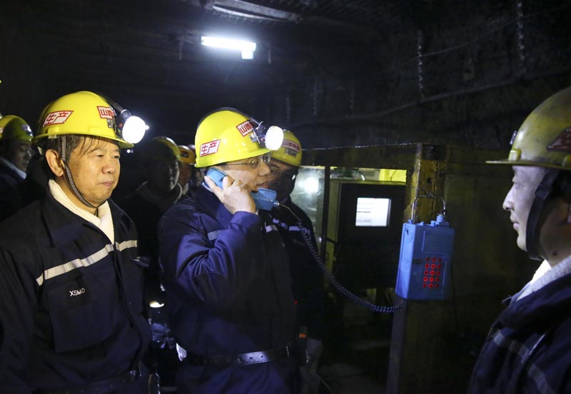 “喂,调度吗?这边瓦斯是多少?” 2016年1月5日,李克强考察山西焦煤集团官地矿,在300多米深的工作面通过井下电话临时抽检安全生产状况。