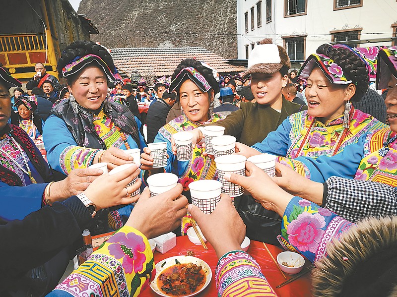茂县曲谷乡群众摆起坝坝宴欢庆新春佳节。