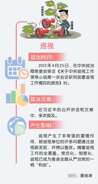 2013年,中央政治局常委会议审议通过《中央巡视工作规划(2013—2017年)》,听取每一轮巡视情况汇报。而在2015年,中共中央印发了《中国共产党巡视工作条例》,成为规范巡视工作、强化党内监督的重要基础性法规。中共十八大之后施行的专项巡视等做法,写进了《条例》中。