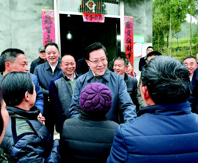 二月二十二日,省委书记王东明来到今年新联系的建档立卡贫困村———仪陇县日兴镇黎明村,实地检查精准扶贫精准脱贫“两不愁三保障”和“四个好”目标落实情况,与当地村民们亲切交流。本报记者 毛漫丁 摄