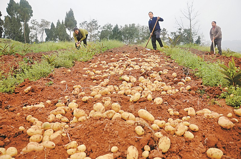 荣县雷音乡新屋坝村的村民们正在忙着挖土豆