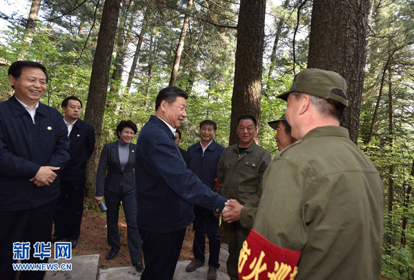 2016年5月23日至25日,中共中央总书记、国家主席、中央军委主席习近平在黑龙江考察调研。这是5月23日下午,习近平在上甘岭林业局溪水国家森林公园视察时,叮嘱林场工作人员一定要把森林资源保护好。 新华社记者 李涛 摄