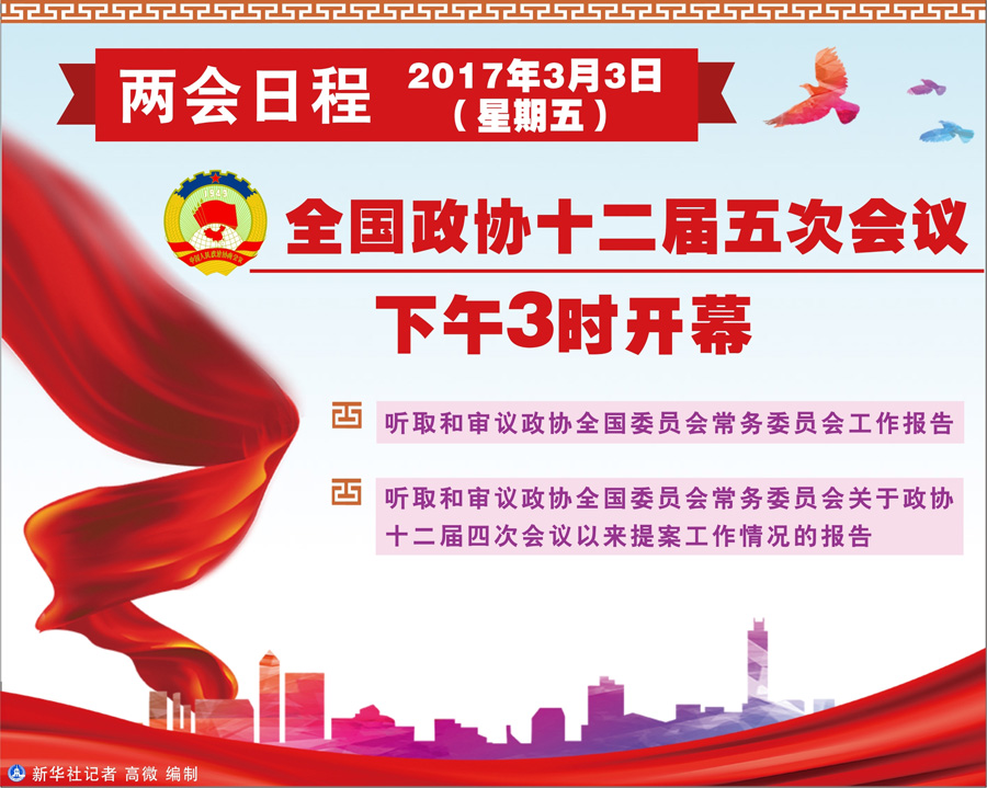 图表:3月3日两会日程 新华社记者 高微 编制