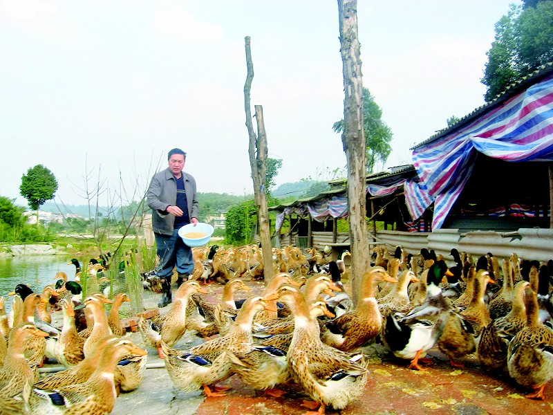 3月5日,记者来到泸州市纳溪区丰乐镇沙坪村“泸州洪春禽类养殖专合社”的养殖基地看到,一只只大麻种鸭正在“嘎嘎”地欢叫着奔向喂食的主人。基地业主喻永洪兴奋地告诉笔者:“一只种鸭在产蛋孵苗的10个月里,可孵化成活200只鸭苗,一只鸭苗要卖6—6.5元,依旧供不应求。”