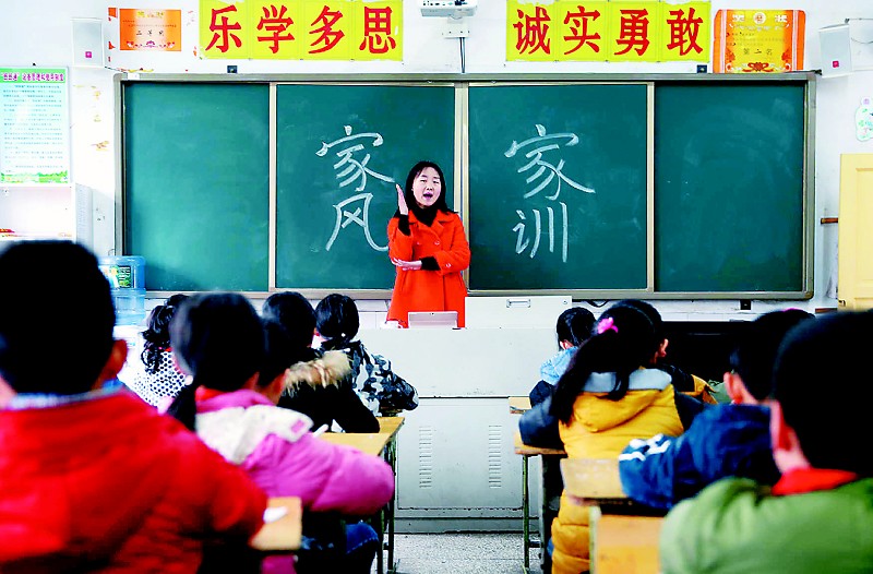 华蓥市把家风家训教育引进课堂,与校园文化、传统文化等有机融合,通过老师传授相关知识和学生讲故事、谈心得及书法、剪纸等多种形式,在校园中学家风、传家风。图为3月14日,华蓥市双河小学五年级二班的德育老师,在给学生上家风家训课。特约通讯员 邱海鹰 摄(视觉四川)