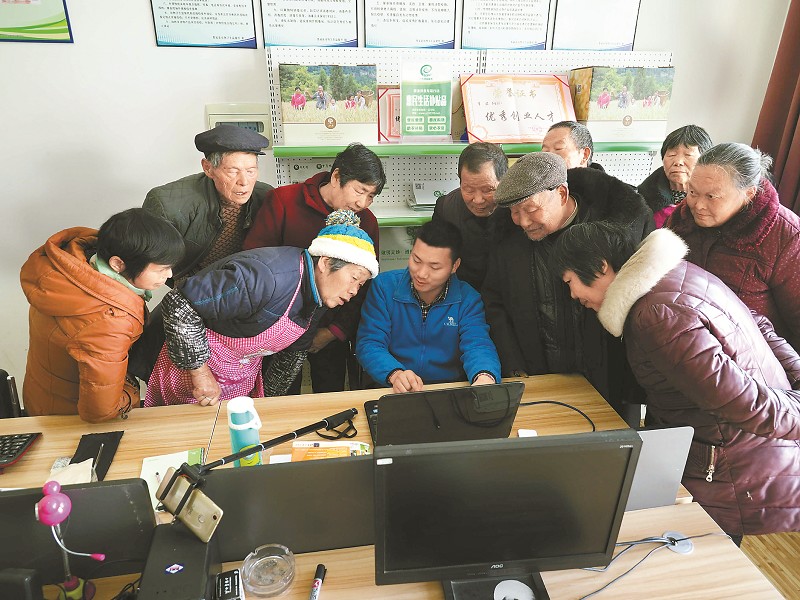 3月12日,加入品质控制和营销团队的大学毕业生正在为村民播放养殖技术视频。