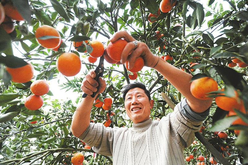 宜宾市南溪区江南镇登高片区栽种塔罗科血橙上万亩,产量达6000多吨,每年为当地村民带来持续稳定的收入。 图为3月18日,自由村村民徐克金正在为游客采摘塔罗科血橙。 王宇 摄