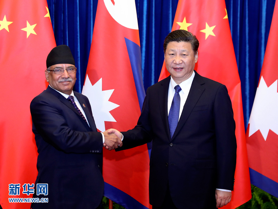 国家主席习近平27日在人民大会堂会见尼泊尔总理普拉昌达。