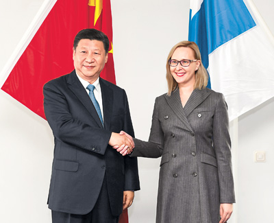 国家主席习近平5日在赫尔辛基会见芬兰议长洛赫拉。