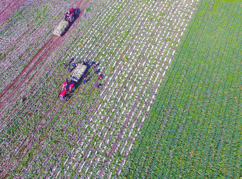 4月12日,武胜县金光乡吊楼村群众在替业主收萝卜。吊楼村是今年将脱贫摘帽的贫困村,该村在推进精准扶贫中,引进业主以每亩300元的价格,租赁300余亩河滩地,种植沙滩萝卜。自从去年8月引进业主规模种植萝卜后,通过流转土地的租金收入和务工收入,今年全村每户平均至少增收3000元。 张启富 摄(视觉四川)