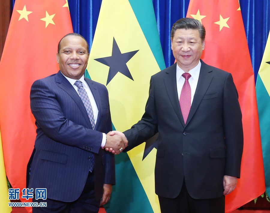 4月14日,国家主席习近平在北京人民大会堂会见圣多美和普林西比总理特罗瓦达。 新华社记者 姚大伟 摄