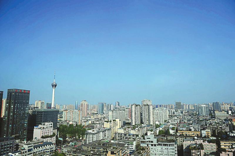4月15日,成都市城区晴好的天气带来良好的空气通透度,“成都蓝”再现。 本报记者 肖雨杨 摄