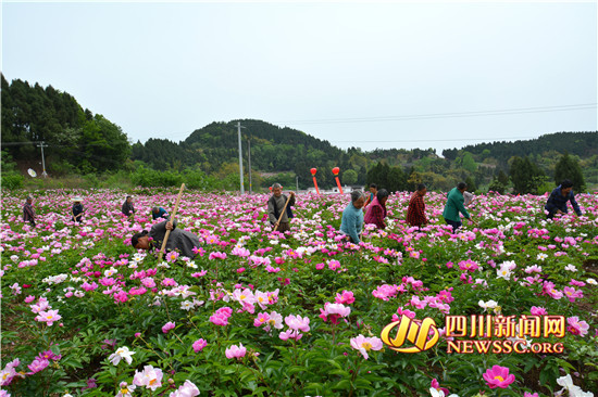 四川新闻网德阳4月24日讯(甘丽 记者 周鸿 摄影报道)天蓝气清,树木青翠环绕,白、粉、红、紫的各色芍药缠绕在中江县元兴乡西阁村山间。在外地游客看来,这里是如诗如画的美景,但对当地村民来说,这是致富增收的“法宝”。近年来,元兴乡以增加贫困农民收入、提高发展能力为核心,以整村推进、产业开发等为抓手,因村施策育产业,精准扶贫促发展,奏响了扶贫攻坚的“交响曲”。