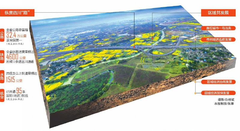 区域经济协同发展。成都平原经济区经济总量最大,同时在科学发展、转型升级、全面小康、城镇化建设、改革开放等方面继续走在全省前列。川南经济区一体化发展全面提速,正加快建设国家级能源化工基地和装备制造业基地,临港经济和通道经济发展热火朝天;川东北经济区正加快建设西部重要的能源化工基地和农产品深加工基地,这两个万亿级新兴增长极正加速崛起。攀西经济区抓住建设攀西国家战略资源创新开发试验区机遇,大力推进全面创新改革,整体经济实力持续提升。川西北生态经济区实现生态建设与生态经济有机结合、协同发展。县域经济加快发展。2016年,全省183个县(市、区)有112个县(市、区)GDP总量超过100亿元,比2012年增加27个,其中超过300亿元的县(市、区)由2012年的17个增加到2016年的33个。一大批产业特色鲜明的工业经济、现代农业、生态旅游强县崭露头角,多点多极支撑的基石更加牢固。
