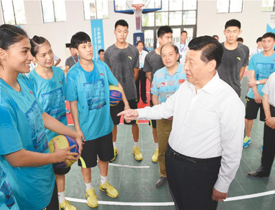 2014年8月15日,习近平看望南京青奥会中国体育代表团。新华社发