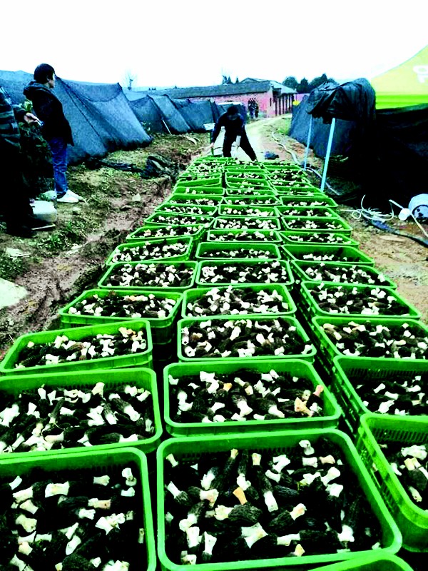 “我在120余亩桂花林、近100亩桃树林、50亩枇杷林、100亩葡萄架下套种了羊肚菌,从今年3月10日开始大面积采收,到4月10日采收结束。平均亩产羊肚菌400斤以上。”贾中科说:“产量最高的是桂花林,亩产达到了400-500斤;桃树林和枇杷林,400斤/亩;葡萄架下只有300斤/亩。”