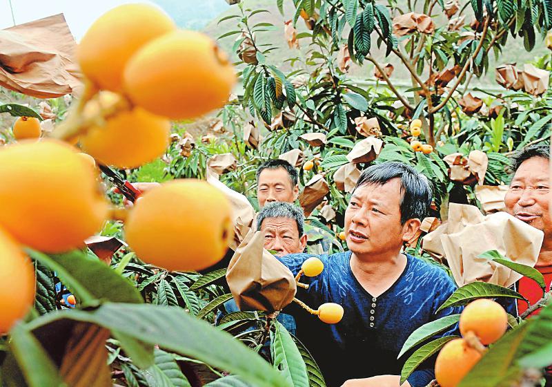 近日,石棉县丰乐乡三星村枇杷熟了,吸引了不少游客体验采摘。同时,成都、云南、重庆等地水果商也来到该村订购枇杷。村民还通过电商平台网上售卖。三星村全村有1283人,因种植枇杷,人均年收入达到9000多元。本报记者 衡昌辉 摄