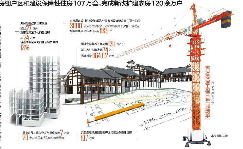 省住建厅相关负责人介绍,百万安居工程实施三年以来,在房屋、基础设施、公共服务设施建设等方面已经产生了超过3000亿元的有效投资,成为支持我省稳增长的重要力量。