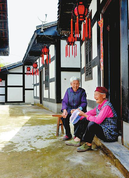 5月12日,邻水县袁市镇谈家大院的两位老人坐在门前聊天。张启富 摄(视觉四川)