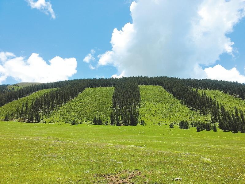 新龙县采伐地更新林木。