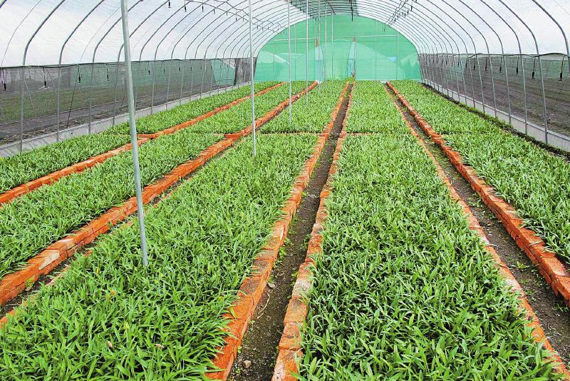 康定高原药材野生抚育基地药材繁育大棚。