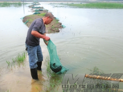 5月22日上午,记者来到清辉村9组养虾大户黄东的养殖场,只见五六个工人正忙着用网兜将小龙虾拉出水面检查生长情况,然后又将其投入水中。黄东告诉记者,这片水域有50亩,去年养殖小龙虾实现产值30多万元。
