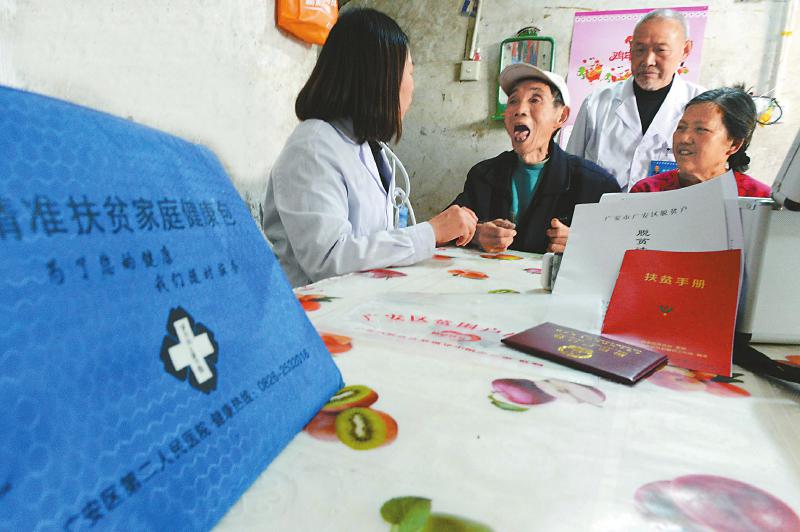 日前,在广安市广安区花桥镇石鼓村,乡村签约家庭医生对贫困户进行免费健康体检。目前,该区建档立卡贫困人口家庭医生签约服务率达100%。本报记者李向雨 摄