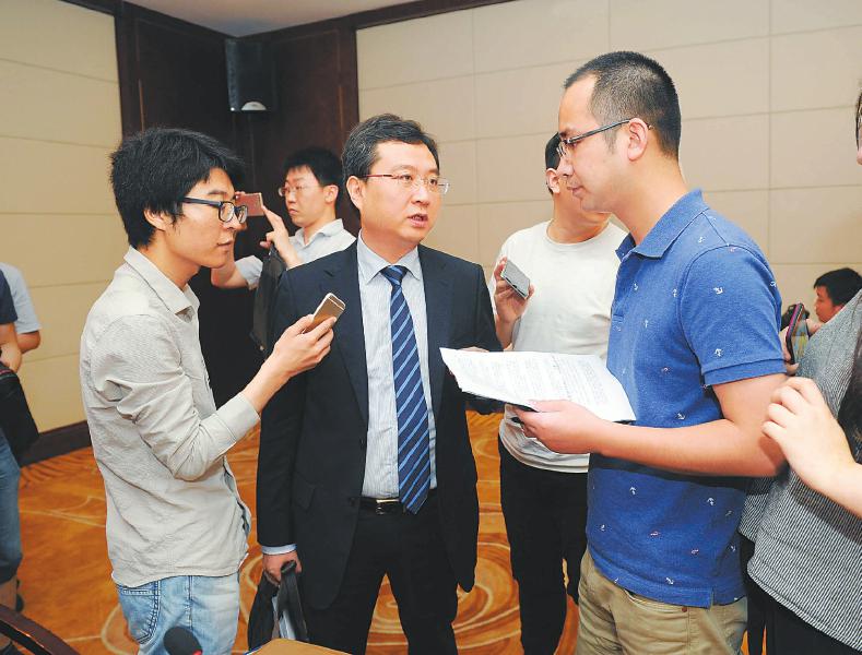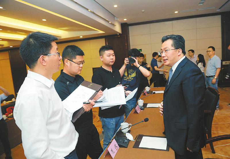 新闻发布会结束后,发布人被记者们围着提问。