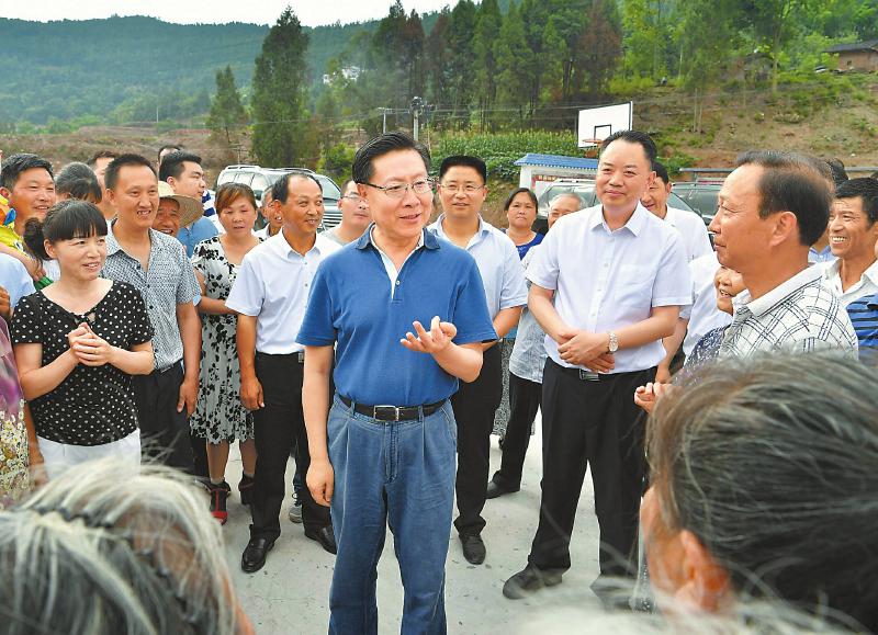 6月19日,省委书记王东明来到仪陇县新政镇金鸡山村调研督导脱贫攻坚工作,与当地群众亲切交流。四川日报记者 毛漫丁 摄