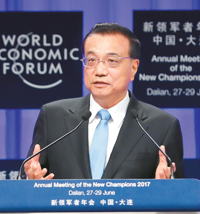6月27日,国务院总理李克强在大连国际会议中心出席2017年夏季达沃斯论坛开幕式并发表特别致辞。