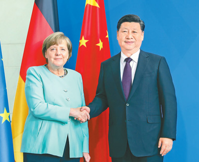国家主席习近平5日在柏林同德国总理默克尔举行会谈。两国领导人高度评价中德传统友好,为中德全方位战略伙伴关系下阶段发展描绘新蓝图、明确新目标、规划新路径,一致同意深化政治互信、加强务实合作、深化人文交流、密切多边配合,推动中德关系百尺竿头更进一步。