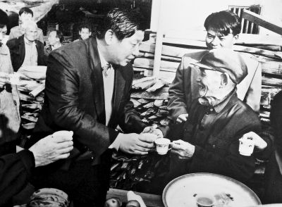 1996年5月,习近平总书记(时任福建省委副书记)在长汀县河田镇察看精制茶叶加工场。(资料图片)