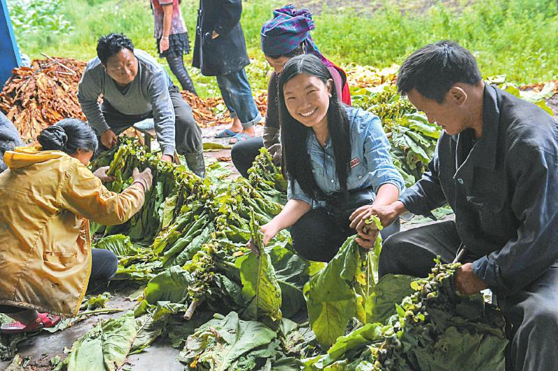 7月17日,凉山州美姑县峨曲古乡村民正在捆扎晾晒烟叶。近年来,美姑县紧紧围绕农业增效和农民增收两大重点,不断优化农业产业结构。本报记者 吴传明 摄