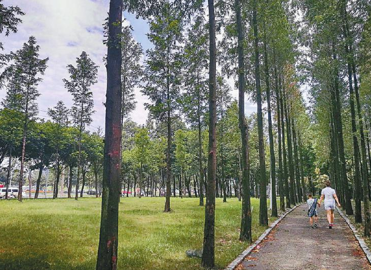 7月20日,成都市西三环五段,市民行走在公路两边新增的绿道上。本报记者何海洋摄