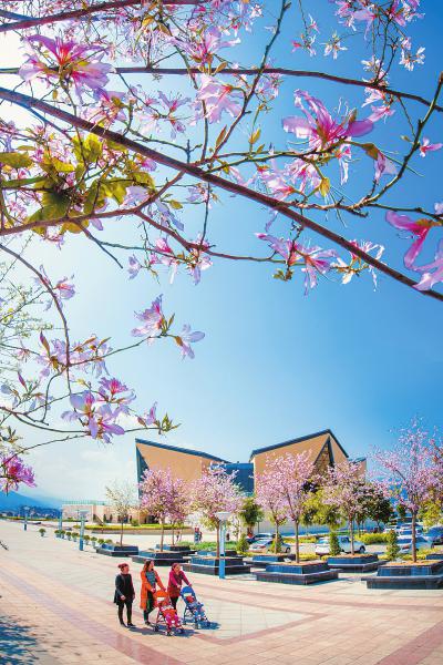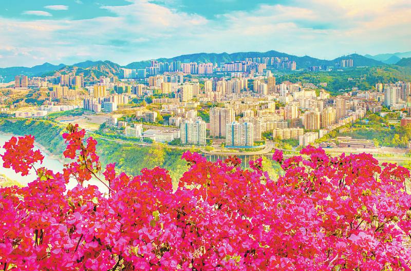 三角梅掩映下的主城区。王东 摄
