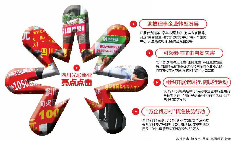1995年,四川省光彩事业促进会(下称“省光彩会”)成立。近23年来,省光彩会先后组织开展了光彩事业阿坝行、广元行、通江行、平武行等活动,实施了“射洪光彩助残”“暖冬计划”“关心下一代工程行动”等项目,组织发放了“光彩助学金”等捐款,越来越多四川民营企业和企业家投身光彩事业。