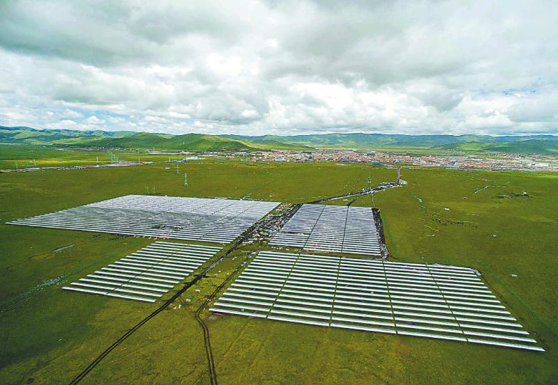已建成投产的红原县花海光伏电站是全球首座高原高效光伏电站,实现了生态环保与清洁能源生产的有机结合。