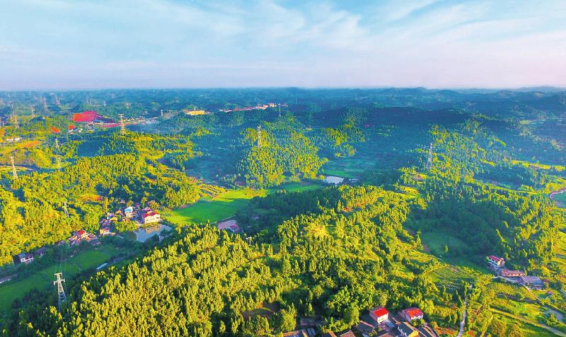 近年来,遂宁市开展大规模绿化全川遂宁行动,生态环境整体好转。图为8月8日的遂宁市船山区保升乡,村庄错落有致地分布在绿林中,格外美丽和谐。