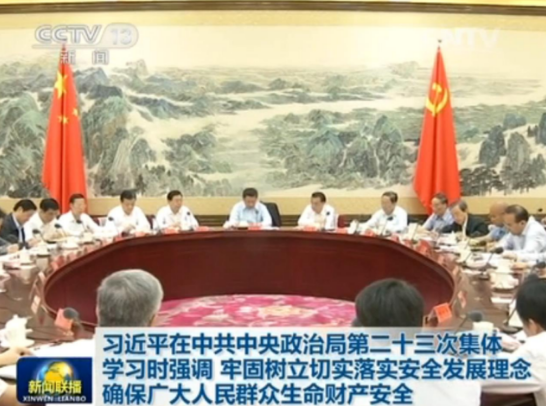 2015年5月29日,习近平在中共中央政治局第二十三次集体学习时强调,牢固树立切实落实安全发展理念,确保广大人民群众生命财产安全。(来源:新闻联播)