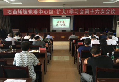 8月11日下午,内江市隆昌县石燕桥镇召开党委中心组(扩大)学习第十六次会议,集体观看大型电视政论专题片《将改革进行到底》第一集《时代之问》,全体镇机关干部参加了学习会。