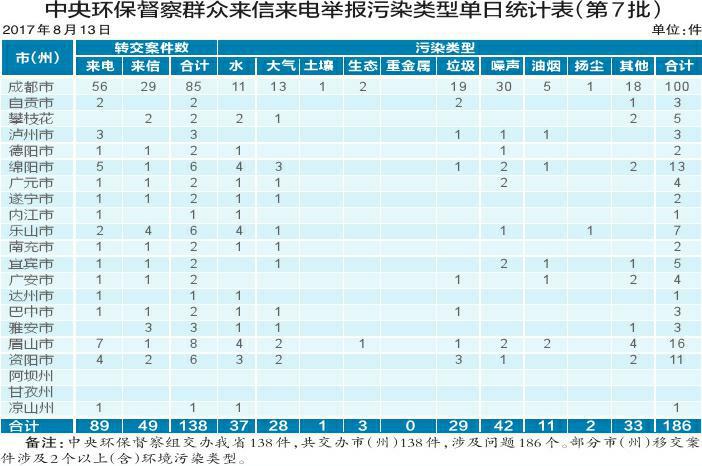 8月14日,中央环保督察组向我省移交第七批信访件,共计138件。加上此前移交的682件信访件,目前累计移交信访件820件